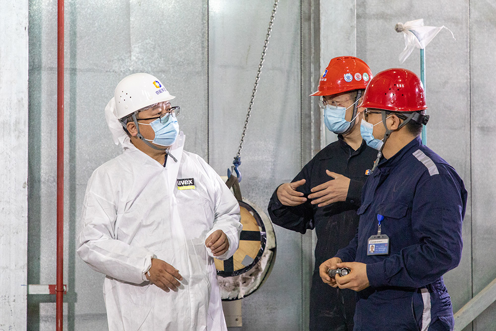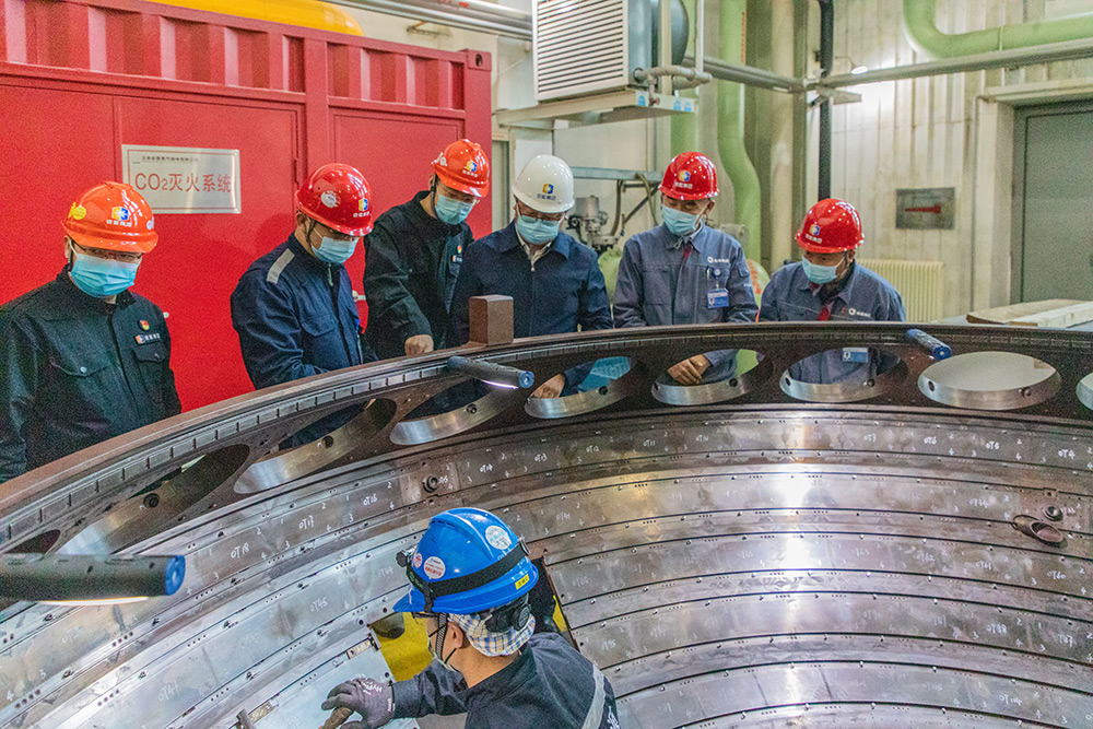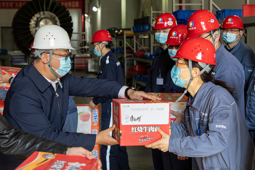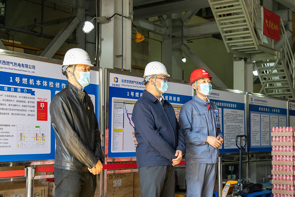 4月13日下午,京能清洁能源党委副书记、工会主席厚伯茏到京西热电1号燃机A级检修现场亲切慰问生产一线职工。清洁能源党群工作部部长常立行,京西热电党委副书记、纪委书记、工会主席赵立群陪同慰问。