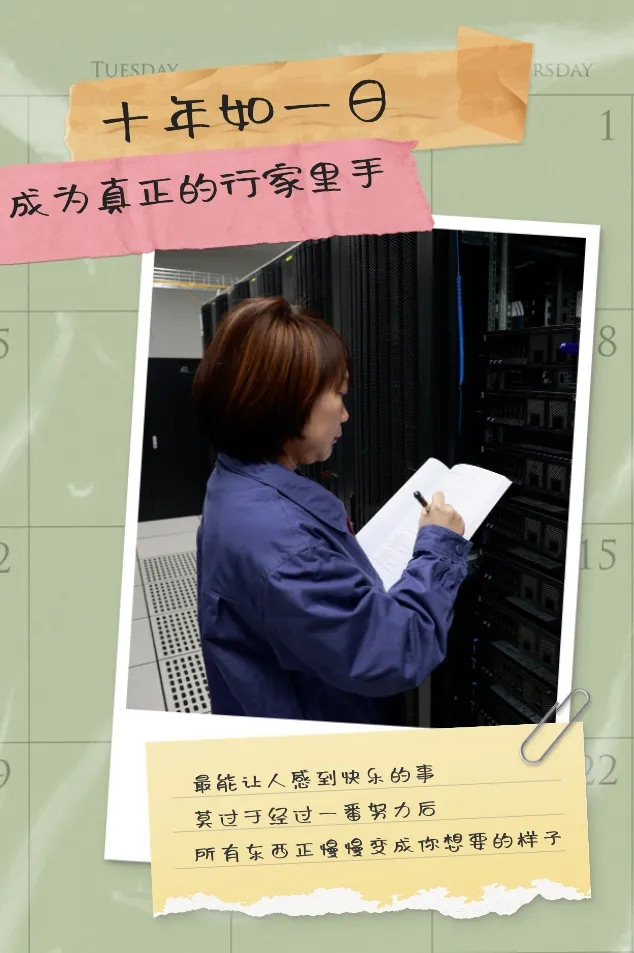 十余年间,她亲历了公司信息化工作从简单日常电脑办公到全流程信息协同,再到如今以大数据为支点的能源革命。这过程中,她深知知识的更迭如同一台高速列车,“只有紧紧抓牢才能一直向前,我将自己不断‘归零’”,跟行业前沿的专业课程学理论、跟有经验的师傅学现场,片刻不敢懈怠,在时间的累积中练就出独当一面的本领。