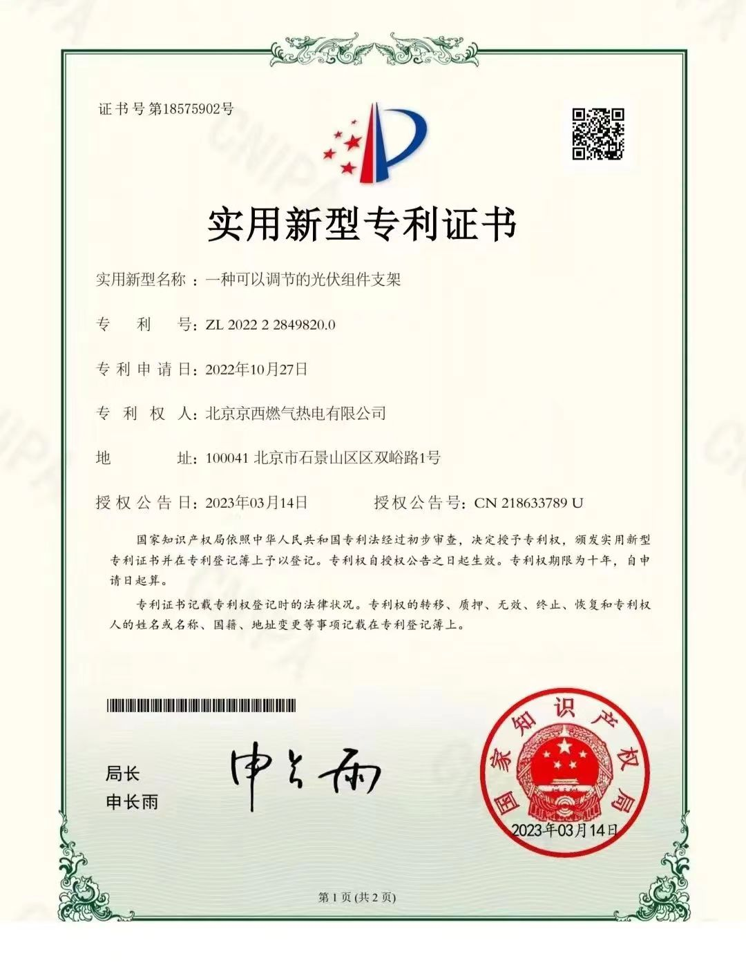 项目落地从来不是一蹴而就,光伏项目新领域、新知识对工作人员提出新挑战,破题的关键就是坚持学习。党员干部发挥党员示范引领作用,带领全体职工秉持能吃苦敢担当的“韧”文化精神,坚持自学与培训相结合,以“理论基础+现场应用”为基础,在干中学、学中干,立足遇到的技术难题,多次召开技术问题讨论会,披星戴月制定问题解决方案,狠抓技术攻关。时光不负有心人,从前期准备工作,到发改委备案、电力接入系统申请、项目主体建设,以及今后的运行维护等工作,全部由公司独立自主完成,《一种可以调节的光伏组件支架》取得实用新型专利,为后续分布式光伏项目开发提供充足的专业知识和人才储备,进一步开拓视野、拓展思路。