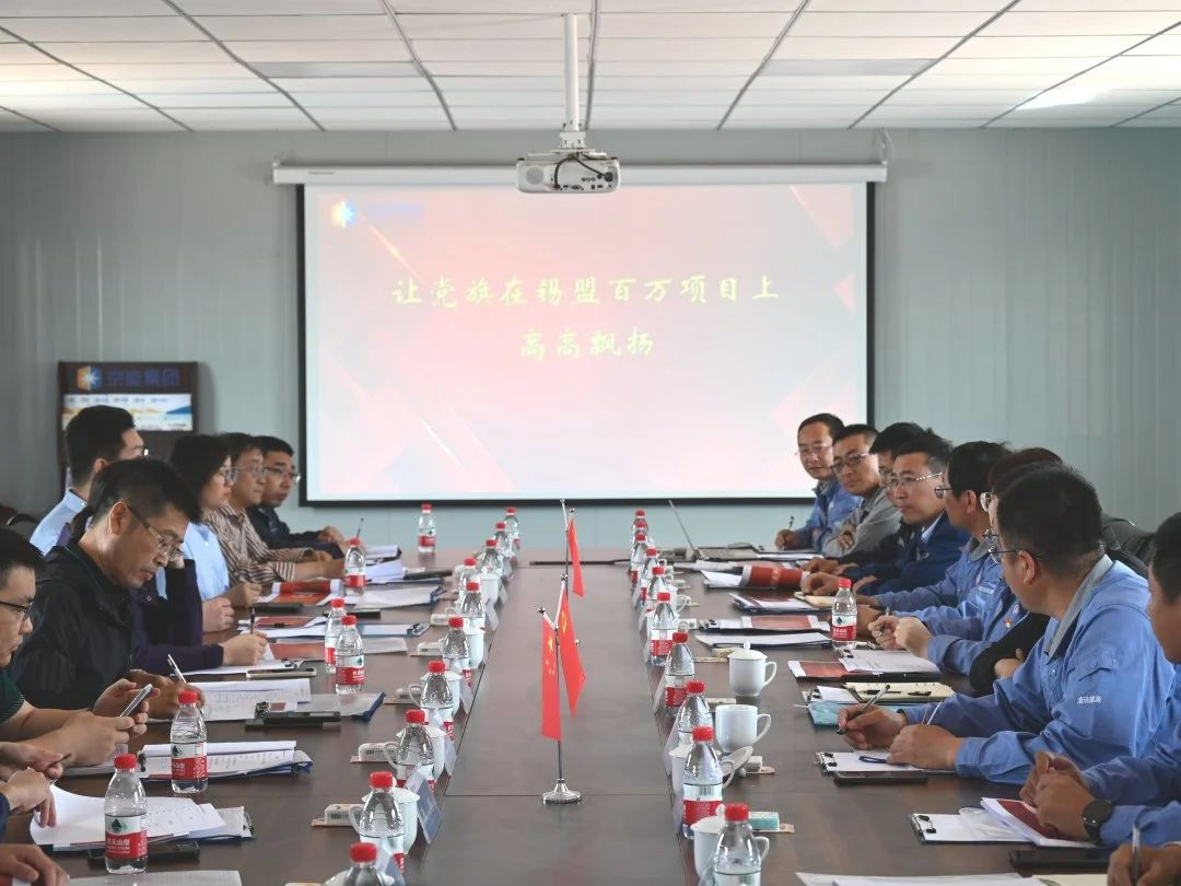 共建双方党支部参观了苏左50万千瓦风电项目、阿旗30万千瓦风电项目及配套500千伏变电站工程建设现场,实地查看了查干淖尔风光火储氢示范项目工程进展,并召开了党建共建座谈交流会。