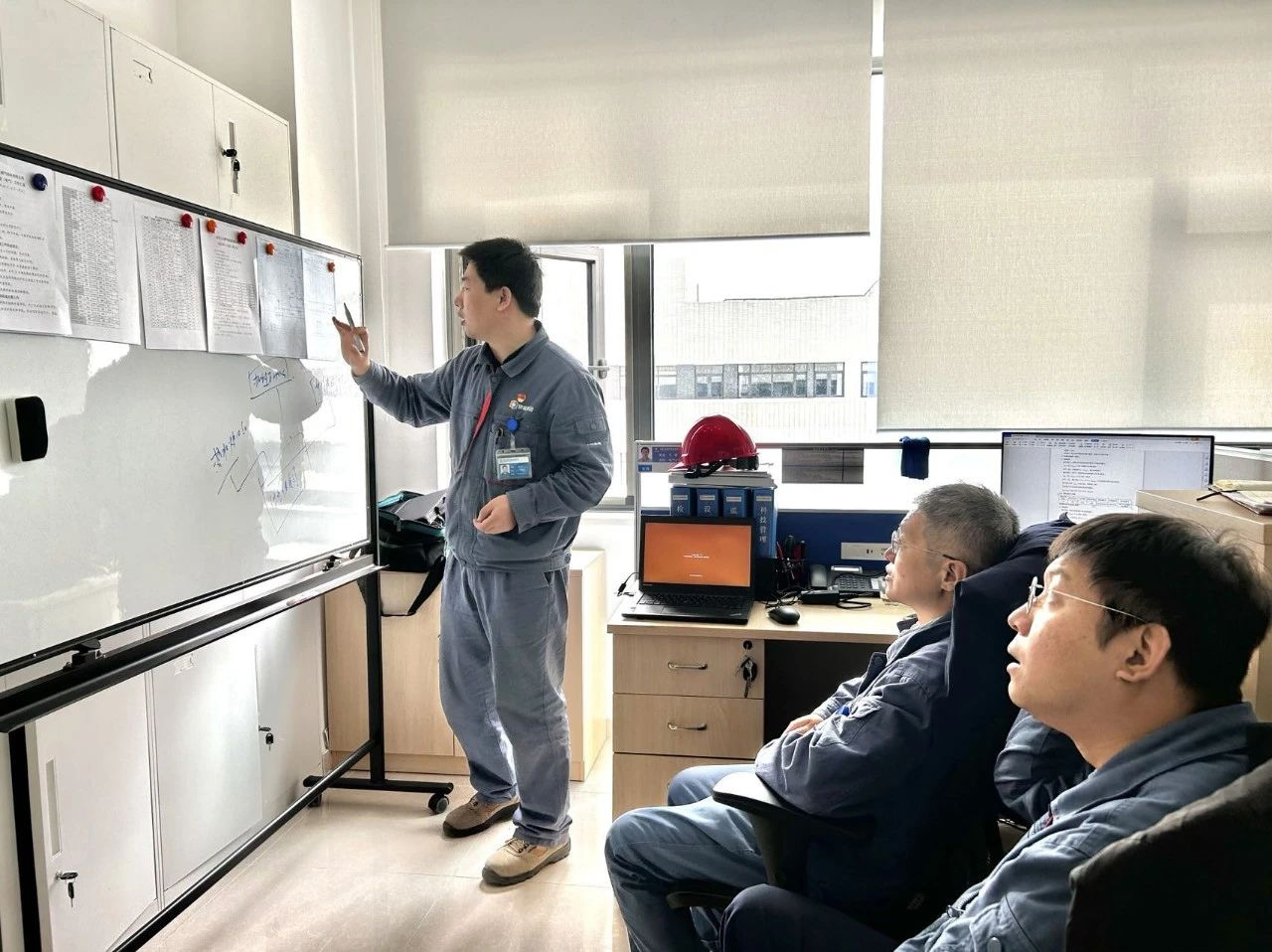在任职电气室主任之初,面对电气室人员不齐,新员工多,专业技术不足,创新能力不强等问题。他带领整个班组走遍了全厂所有角落,对每一个设备、每一个系统都耐心的讲解,手把手的解决新员工电气方面的问题。他积极组织班组成员参与部门“党建+双碳”项目,参与“小改造”“小发明”“小创造”活动,利用公司“合理化建议”平台、“质量管理QC”平台积极开展全员创新性活动,在他带领下,电气室党员组成“党建+双碳”活动小组,通过党员带群众的方式,以生产实际出发,关注改善电力设备的生产环境、提高电力设备生产可靠性、降低电力设备能源消耗三个方面助力公司“双碳”工作。他带领班组先后提出“高压变频器可靠性提升”“全厂照明系统节能优化”“高耗能电力设备能效提升”“保安三电源切换装置可靠性提升”等技改项目。至2023年末,电气班组已经注册成立2个QC活动小组,有效开展课题数量达到8个。电气室的技术创新能力获得稳步提高,创新驱动逐步成为电气室的工作核心。