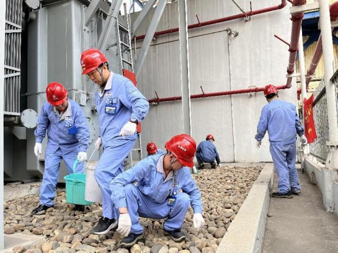 此次活动的内容是在#1-#4主变压器区域挑拣出不规则鹅卵石。活动前,两位支部书记进行了充分的安全交底,各党员干部踊跃争先,积极投入到活动中,形成了“支部引领、党员示范”的良好氛围,大家分工明确、配合默契,充分发挥不怕脏、不怕累的优良作风,处处冲在前,干在前,不放过任何一个死角。此次主题党日活动进一步消除安全隐患,保障安全生产,助力公司高质量发展。